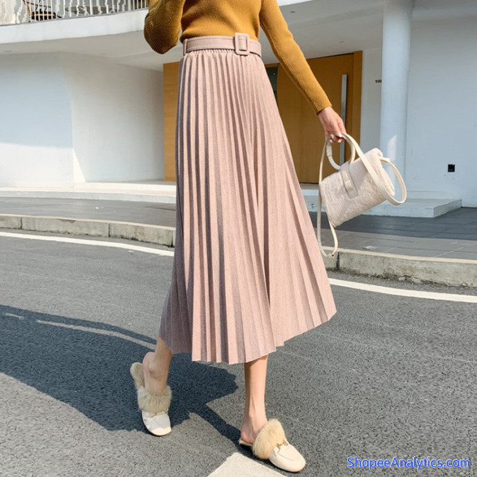Chân váy xếp ly nhuyễn tiểu thư, bánh bèo dài qua gối