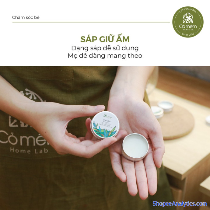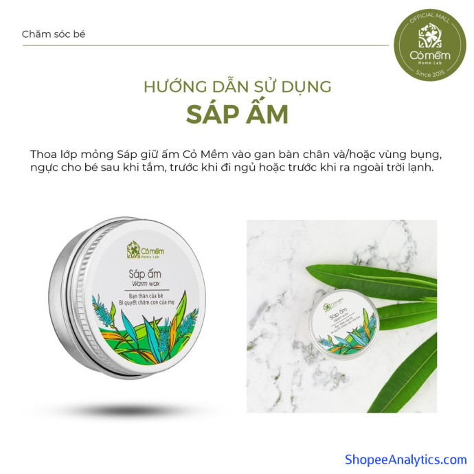 - HDSD: Thoa lớp mỏng Sáp giữ ấm Cỏ Mềm vào gan bàn chân và/hoặc vùng bụng, ngực cho bé sau khi tắm, trước khi đi ngủ hoặc trước khi ra ngoài trời lạnh.