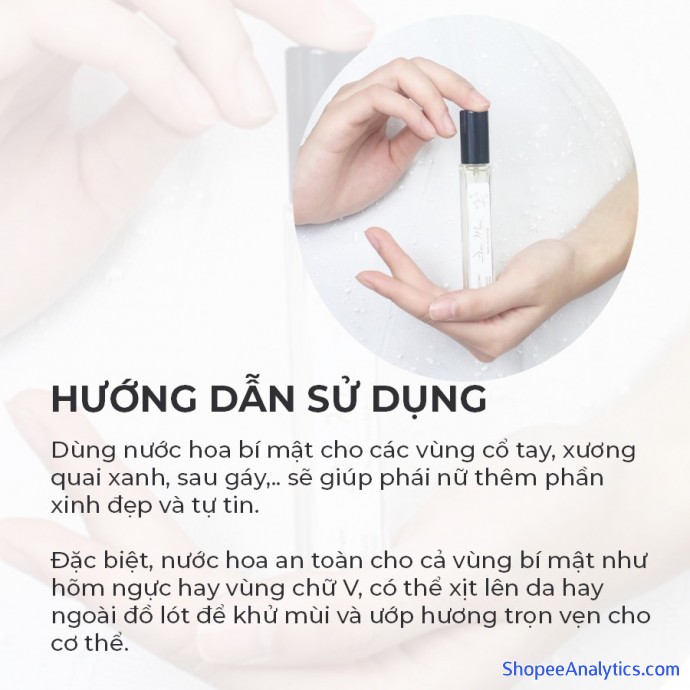 - CÔNG DỤNG: Dùng nước hoa Đêm Mưa bí mậtớc hoa an toàn cho cả vùng bí mật như hõm ngực hay vùng chữ V, có thể xịt lên da hay ngoài đồ lót để khử mùi và ướp hương trọn vẹn cho cơ thể.