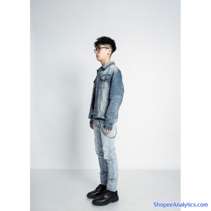 ▪Mô tả: áo khoác bò form rộng (oversized), màu chủ đạo xanh.