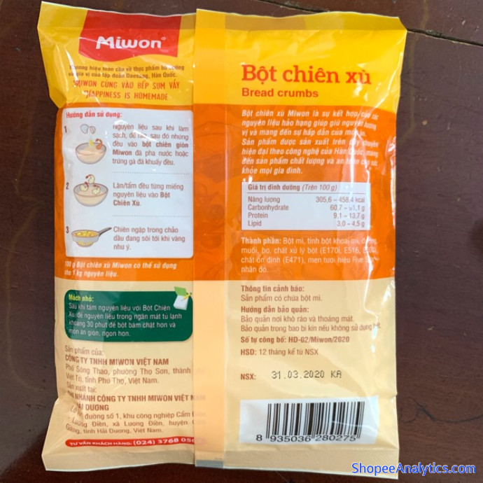 Bột chiên xù trắng giòn tan đến tận cùng thơm ngon chất lượng hảo hạng của công ty miwwon việt nam