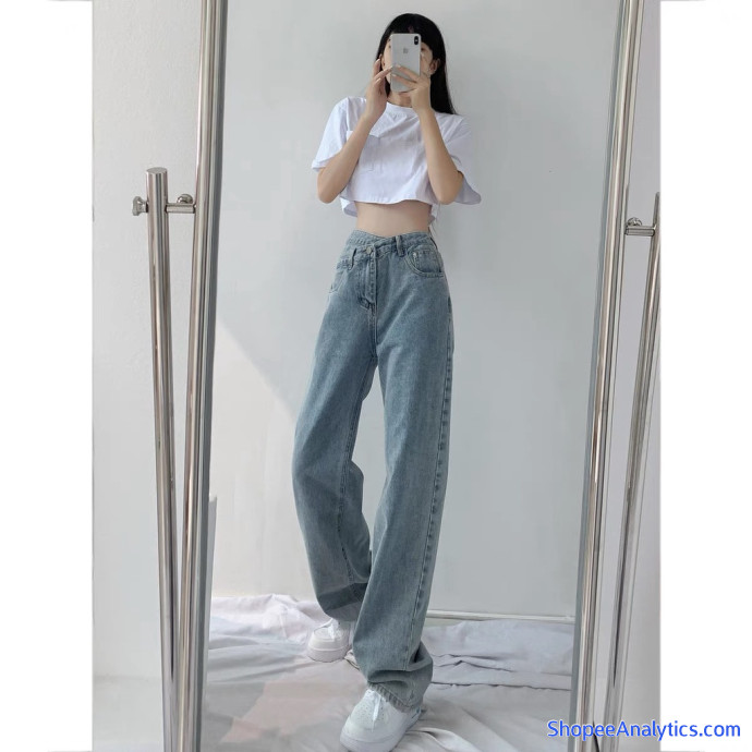 Quần jean nữ ống rộng JEANIE quần bò xuông lưng cao