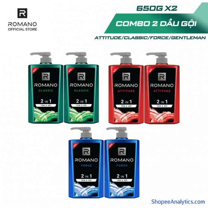 Tắm gội 2 trong 1 Romano mạnh mẽ tự tin nhanh chóng tiện dụng 650gr