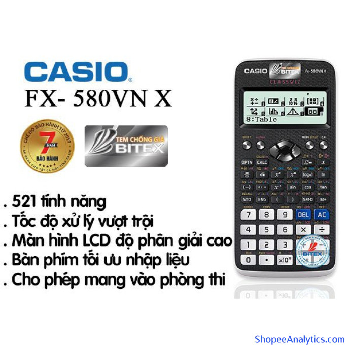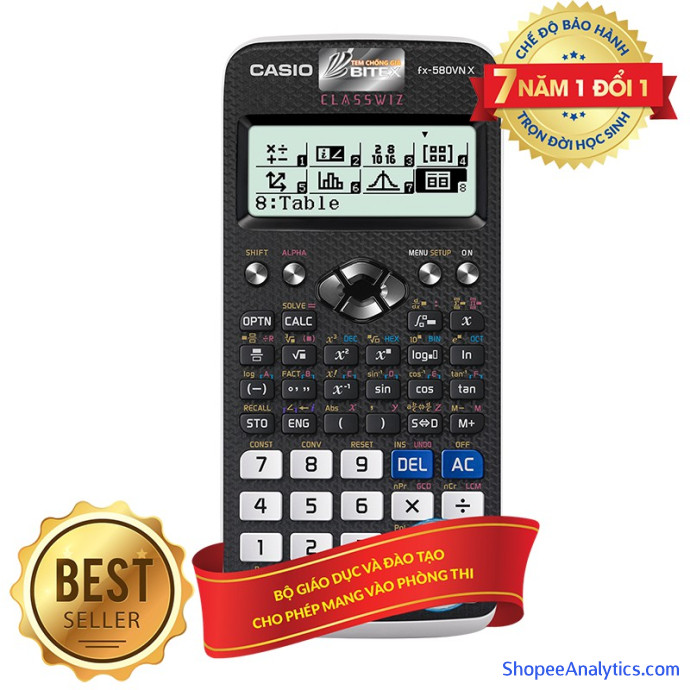 Tổng thể Máy Tính Casio FX-580VN X dành cho học sinh cấp 3 cấp 2 chuyên dụng cho phòng thi dành cho thi đại học và chuyển cấp được đánh giá trung bình 4.97/5 điểm dựa vào 845 đánh giá qua 1,607 lượt mua hàng (Cập nhập ngày 26/08/2021).