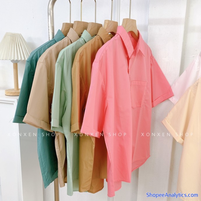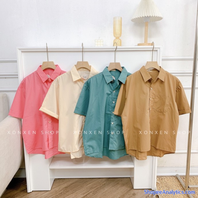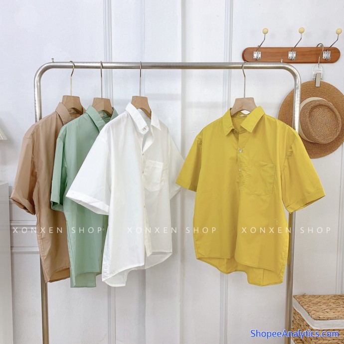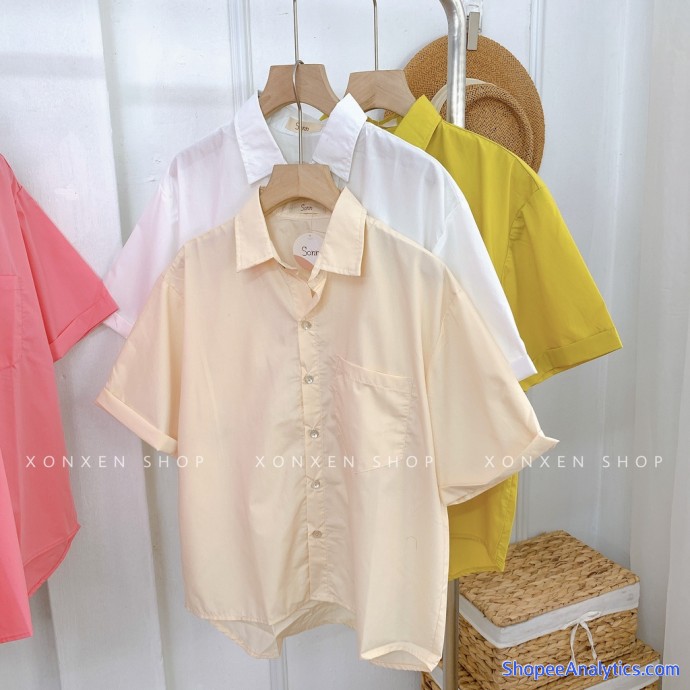 - Tên sản phẩm: Áo sơ mi nữ tay ngắn, áo sơ mi đi học 1 túi dễ thương XONXEN SHOP freesize mã 32