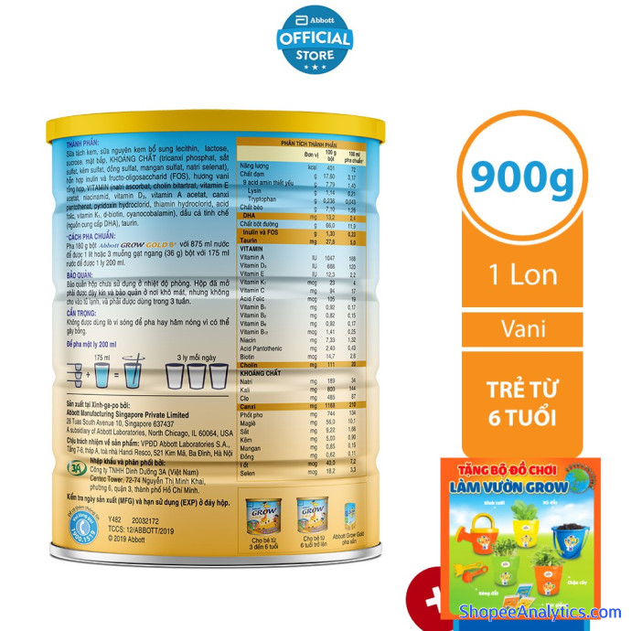 Cách sử dụng: Để có 200ml Abbott GROW GOLD 6+ cho 175ml nước chín để nguội vào ly (khoảng 370C), từ từ cho vào ly 3 muỗng gạt ngang (36g) bột Abbott GROW GOLD 6+ (muỗng có sẵn trong hộp), khuấy cho tan đều. Uống ngay sau khi pha