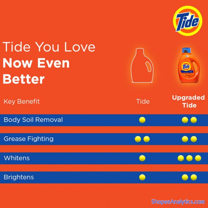 Tide, nhãn hiệu Giặt Tẩy Cải Tiến bán chạy Số 1 tại Mỹ. Vào thời điểm ra đời Tide đã giúp người phụ nữ tiết kiệm được 9 giờ/tuần, giúp giải phóng cả một thế hệ phụ nữ khỏi công việc giặt giũ nặng nề.