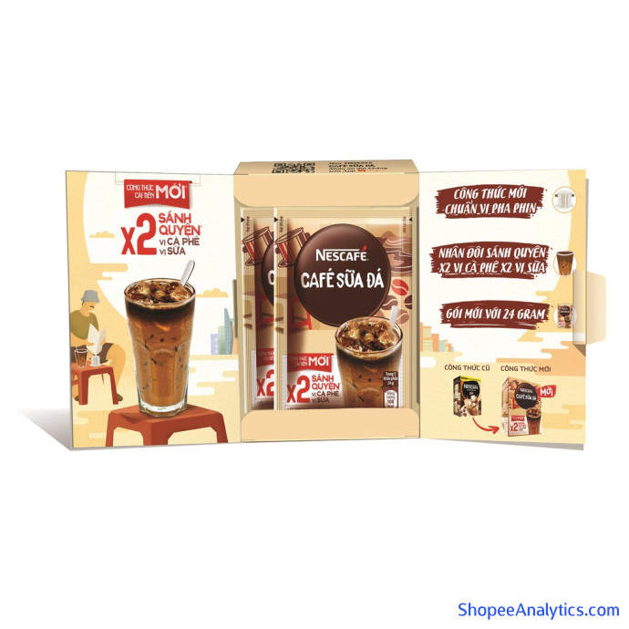 Với công thức mới, cà phê sữa đá Nescafe nhân đôi sự sánh quyện với nhiều cà phê và sữa hơn. Mang đến 1 ly cà phê sữa thơm béo như pha phin, đậm ngon khó cưỡng.