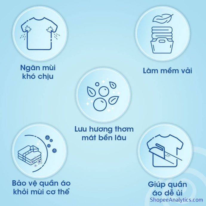 Thành phần: Nước, Diethylester Dimethyl Ammonium Chloride, Copolymer, Cationic polymer, Formic acid, Hydrochloric acid, Sodium1-hydroxyethane-1,1-diphosphonate, Benzyl isothiazolinone, Silicone, Hương liệu.