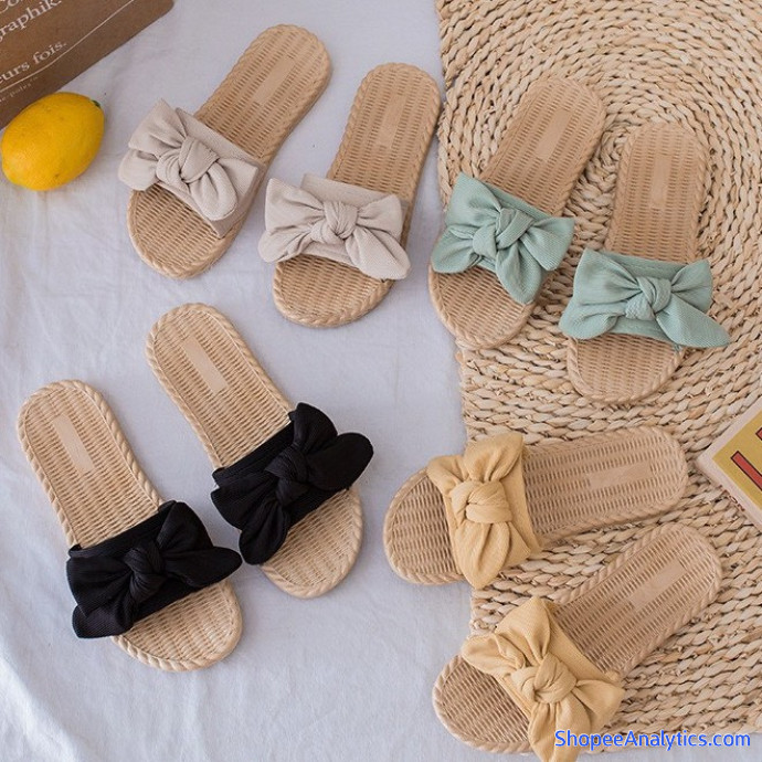 Dép nữ giả cói nữ đính nơ họa tiết xinh xắn dễ thương đế nhựa dẻo 2 lớp
