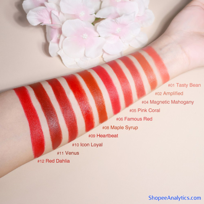 4. Từ màu nude đến màu mận sang màu đỏ tươi, có 12 màu để lựa chọn và màu sắc thật của son môi sẽ không bị phai.