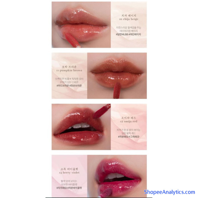* Romand phiên bản Hanbok với 4 gam màu mới chứa lớp tint bóng trong suốt bao bọc lấy đôi môi bạn cùng bảng màu MLBB trang nhã, nhẹ nhàng, lớp stain bóng căng mọng cho bạn đôi môi trong trẻo thanh khiết nhưng vẫn căng tràn sức sống