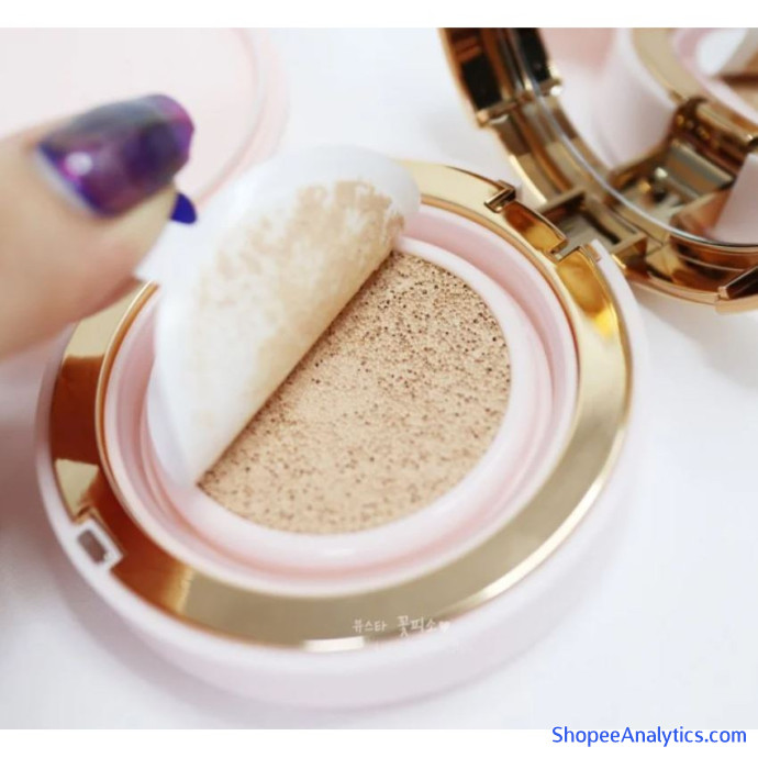 * Hướng dẫn sử dụng: Lột bỏ lớp bảo vệ mặt gương, mở hộp phấn và gỡ bỏ miếng bảo vệ. Dùng bông mút lấy lượng phấn thích hợp vừa đủ, thoa đều các điểm trên gương mặt