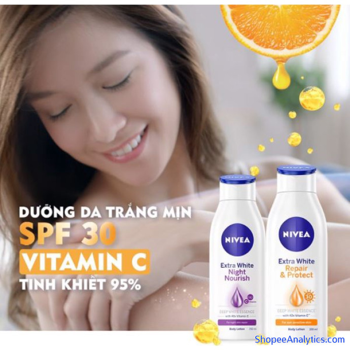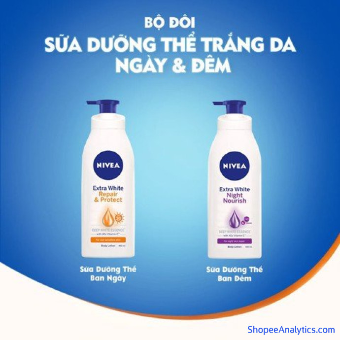 1. Sữa Dưỡng Thể Làm Sáng & Săn Chắc Da Ban Đêm Nivea Extra White Night Nourish Body Lotion, chứa dưỡng chất giúp phục hồi và nuôi dưỡng làn da trong lúc ngủ.