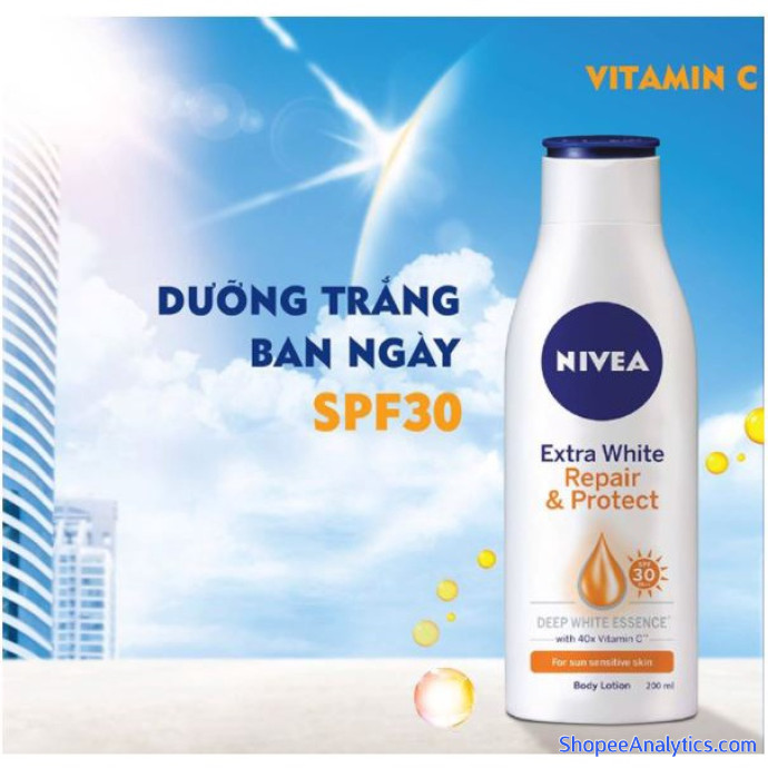 2. Sữa Dưỡng Thể Phục Hồi & Chống Nắng Nivea Extra White Repair & Protect Body Lotion SPF30 hiện đã có mặt tại Thế Giới Skinfood, chứa dưỡng chất giúp nuôi dưỡng làn da từ sâu bên trong, chống lại ánh nắng và các tác nhân gây hại từ môi trường.
