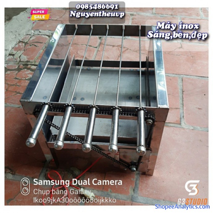 - Máy nướng inox dày 2 li, chân cũng bằng inox hộp.