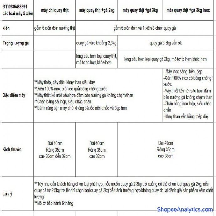 - Máy nướng thịt và gà 3kg: Mô tơ 14w,khỏe hơn, quay gà to hơn, 3.5kg trở xuống.