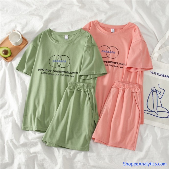 Bộ Quần Áo Nữ Bộ Quần Áo Ngủ Cổ Tròn Tay Lỡ In Họa Tiết Chữ CADAACE Quần Short Trơn Basic Zenkonu QA NU 006