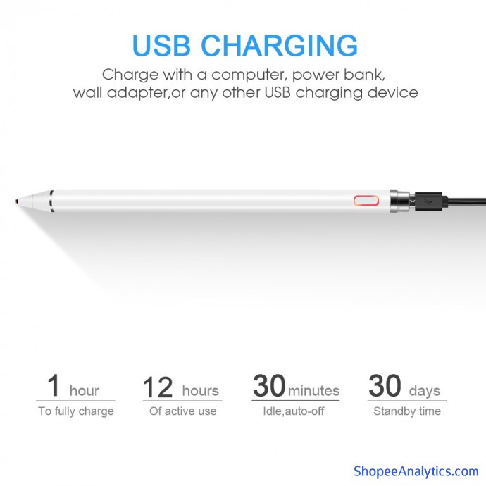 【Với cổng Sạc USB & Tiết kiệm năng lượng thông minh】 Cổng sạc USB Micro, bên trong có pin lithium, có thể sử dụng liên tục trong khoảng 12 giờ. Bạn có thể dễ dàng sạc bút qua bộ chuyển đổi điện AC, sạc dự phòng hoặc máy tính.
