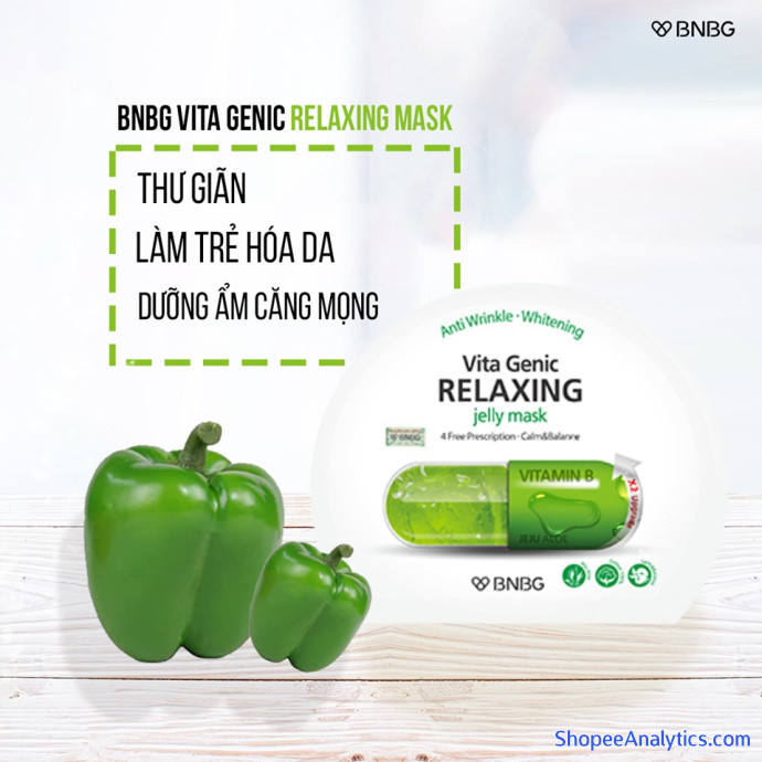 BNBG Vita Genic Relaxing Mask – màu xanh lá: với chiết xuất từ cây lô hội, sản phẩm này cung cấp Vitamin B để giúp da được thư giãn và cải thiện làn da xỉn màu, phục hồi nhanh chóng để thoát khỏi tình trạng mệt mỏi.