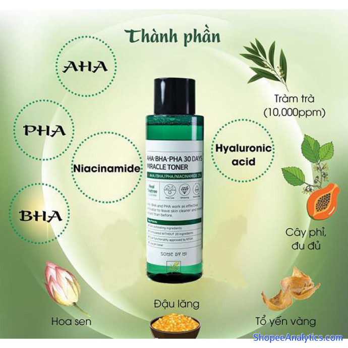 Nước hoa hồng giảm mụn Some By Mi AHA-BHA-PHA 30 Days Miracle Toner là sản phẩm giảm mụn thần thánh đến từ thương hiệu Some By Mi. Đúng như tên gọi, sản phẩm có chứa thành phần chứa AHA , BHA , PHA chiết xuất đu đủ đem lại khả năng làm sạch sâu trong lỗ chân lông hạn chế sự hình thành mụn đầu đen, mụn đầu trắng. 10,000ppm hàm lượng tràm trà được chiết xuất từ thiên nhiên. Giúp làm dịu da, giảm sưng mụn và tiết bã nhờn. Từ đó giúp cải thiện nhanh chóng các vấn đề về da mà bạn đang gặp phải. Giúp kiểm soát bã nhờn; chăm sóc lỗ chân lông; thanh lọc và bảo vệ da; da săn chắc, đàn hồi. Làm sạch sâu cho da, loại bỏ toàn bộ cặn bẩn. Đem lại cho bạn một làn da không mụn, không vết thâm.. Trả lại cho bạn một làn da khỏe mạnh, hạn chế mụn. Làm da trở nên săn chắc, tái tạo collagen mới cho da. Chiết xuất hoa sen trắng: cung cấp nước cho làn da. Làm dịu da bị tổn thương và cân bằng độ ẩm cho da. Bên cạnh đó, sản phẩm còn hỗ trợ cho việc làm sáng da. Tăng cường độ ẩm cho da một cách hoàn hảo, làm dịu da.