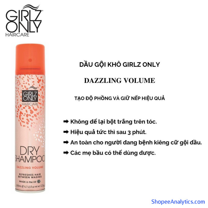 Dầu Gội Khô Giúp Tóc Sạch Dầu Và Trở Nên Bồng Bềnh Ngay Lập Tức Girlz Only Dry Shampoo