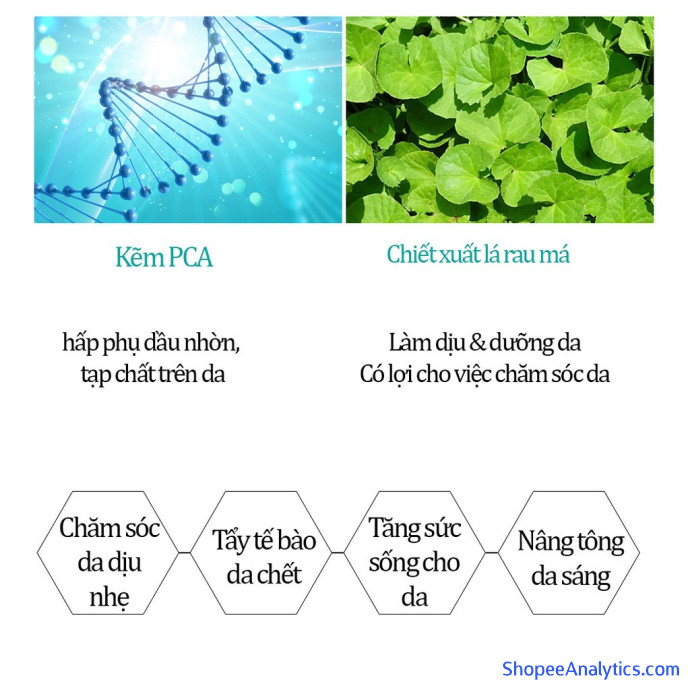 - 1% chiết xuất kẽm là thành phần hữu ích đối với làn da dầu mụn với khả năng miễn dịch, tổng hợp protein, tổng hợp DNA , làm lành vết thương