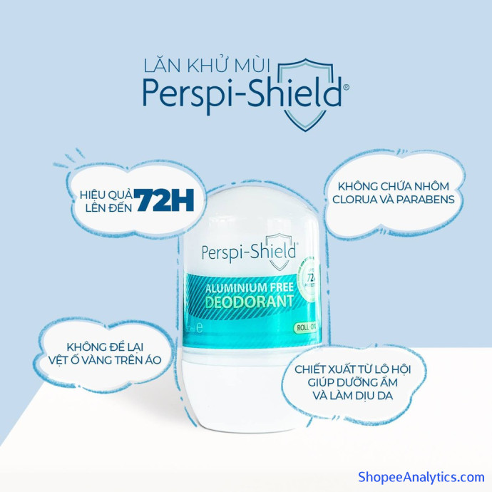 1. Lăn khử mùi, kiềm mồ hôi 72h không chứa muối nhôm Perspi-Shield 72h Aluminium Free Deodorant 50ml