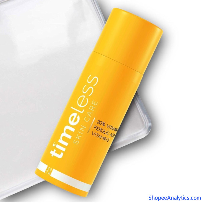 - Timeless 20% Vitamin C + E Ferulic Acid Serum là sự kết hợp các chất chống oxy hoá và bảo vệ da khỏi tác nhân môi trường bằng cách trung hòa các gốc tự do có thể đẩy nhanh sự xuất hiện của lão hóa, giảm vết thâm nám, tàn nhang.