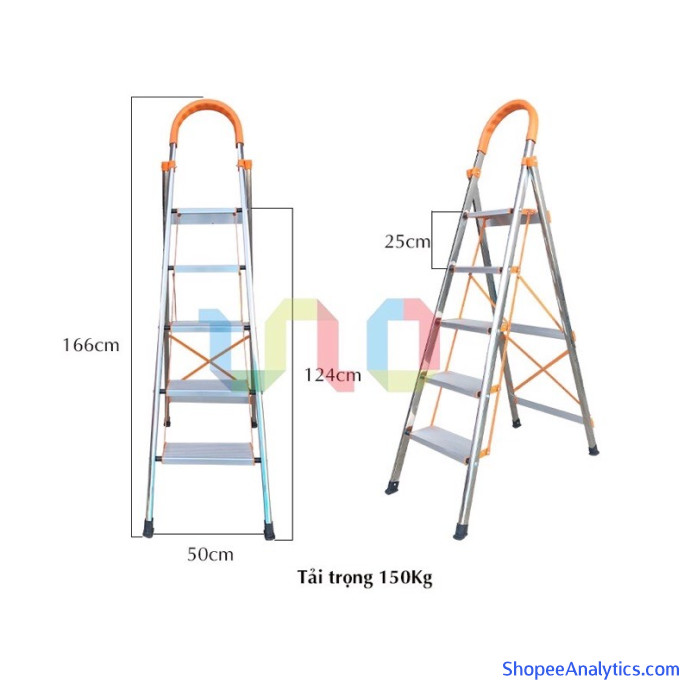 🔧 Loại 5 bậc- chiều cao bậc trên cùng 1.2 m - kt thu gọn1.74 x 0.54 x 0.06m - trọng lượng 6 kg - tải trọng 150 kg