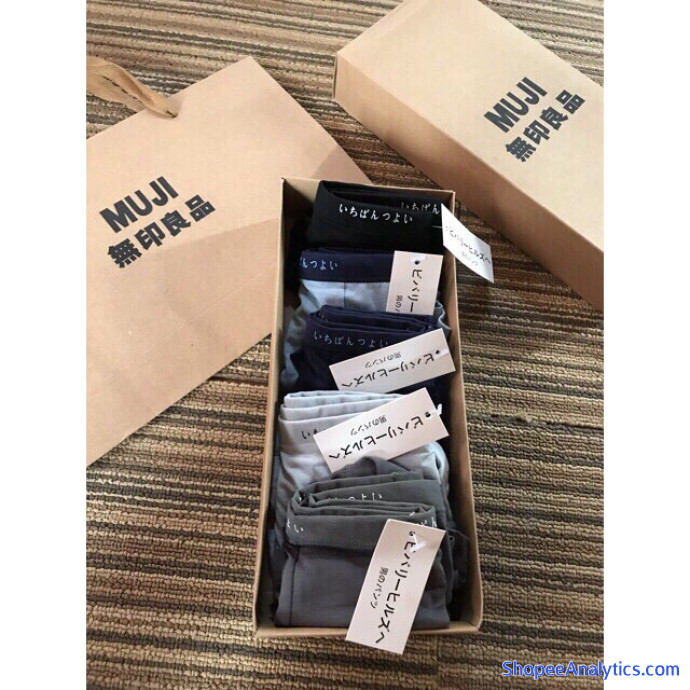 1 set gồm 1 hộp 5 quần sịp đùi Muji xuất Nhật đi kèm túi xách Muji