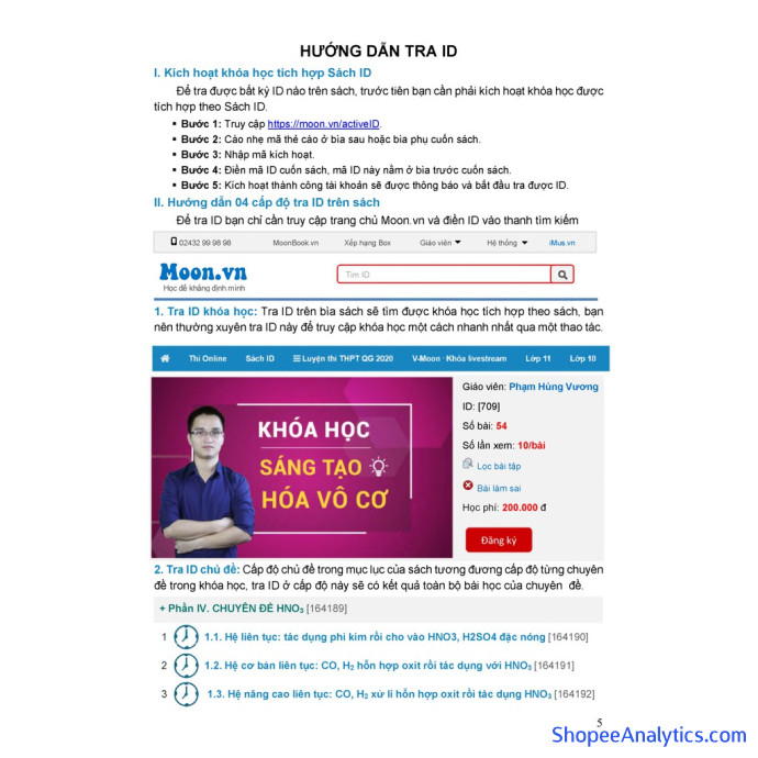 + Đặc biệt, không chỉ nhận được một số lượng đề thi lớn, khi sở hữu sách ID chính hãng, các em còn được cấp mã kích hoạt tài khoản và tham gia luyện đề online cùng hàng ngàn sĩ tử khác tại website Moon