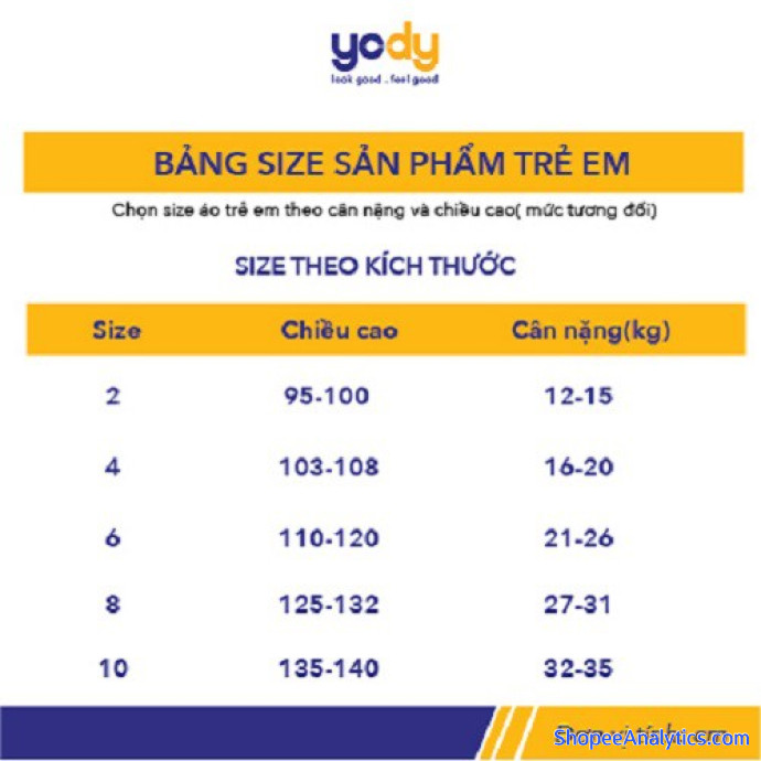 (Bảng size của Yody chỉ mang tính chất tham khảo, tùy thuộc vào số đo cơ thể mỗi người và chất liệu vải khác nhau sẽ có sự chênh lệch nhất định từ 1 - 2cm)