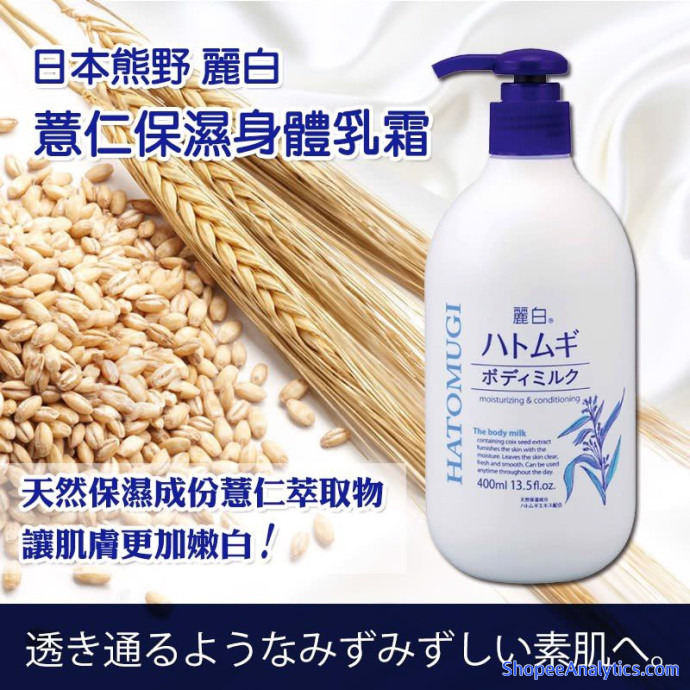 Sữa Dưỡng Cấp Ẩm, Làm Mịn Da Hatomugi Moisturizing & Conditioning The Body Milk với thành phần chính trong dòng sữa dưỡng thể này là hạt ý dĩ, một thành phần không thể thiếu trong hầu hết các sản phẩm làm đẹp của hãng Hatomugi. Hạt ý dĩ là thành phần làm da trắng phi thường nhưng lại không gây bào mòn da.