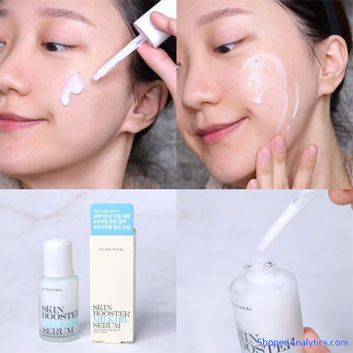 Tinh Chất Dưỡng Trắng So'Natural Skin Booster Milk Oil Serum chứa chiết xuất protein sữa để nuôi dưỡng da khỏe mạnh, cung cấp tinh dầu và nước cho da khô trở nên ẩm mượt mà không nhờn dầu. Tinh Chất Dưỡng Trắng So'Natural Skin Booster Milk Oil Serum kết cấu màu trắng sữa dạng sánh mịn, mùi thơm dịu nhẹ, tan nhanh vào da.