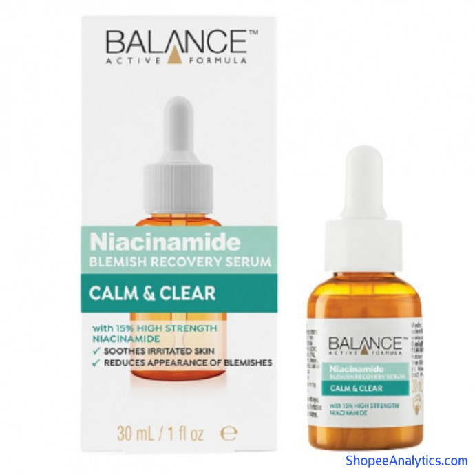 6. Tinh Chất Làm Mờ Thâm Mụn Balance Active Formula Niacinamide Blemish Recovery Serum là một loại tinh chất nhẹ dạng nước với 15% Niacinamide - một loại Vitamin B3 tự nhiên giúp giảm dầu thừa, giúp lỗ chân lông được thu nhỏ lại. Đồng thời, làm giảm các nhược điểm trên da và làm mờ vết thâm, giúp cải thiện kết cấu da và khuyến khích làn da khỏe mạnh