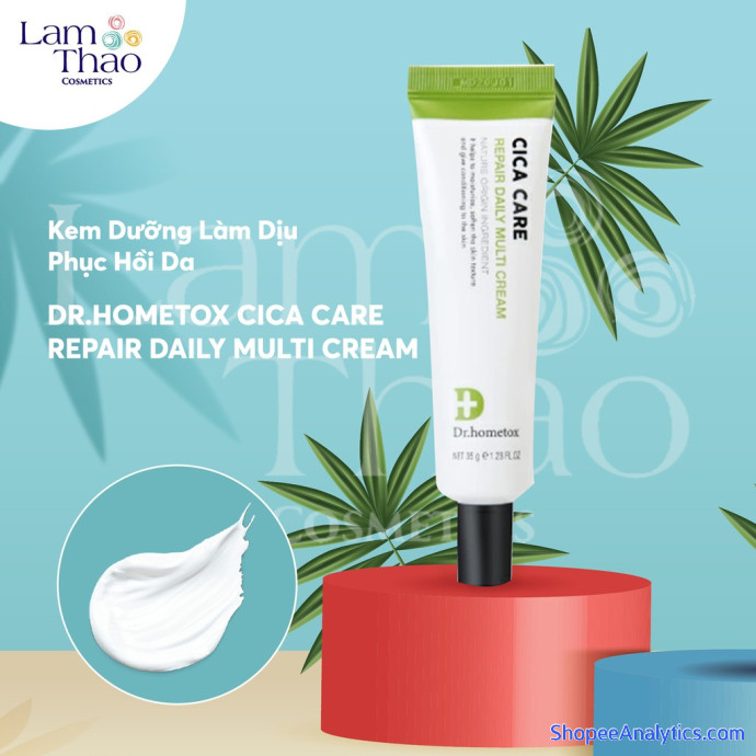 2. Kem Dưỡng Làm Dịu Phục Hồi Da Dr.hometox Cica Care Repair Daily Multi Cream chứa chiết xuất Centella Asiatica ( rau má ) giúp tăng cường lưu thông máu dưới da và asiatica kích thích tái tạo tế bào da mới, giúp làm lành nhanh các vết thương, mau lên da non, làm dịu làn da mẫn cảm, chống oxy hóa và góp phần cải thiện độ đàn hồi của da