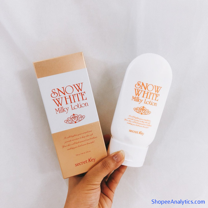 Sữa Dưỡng Thể Trắng Da Toàn Thân Secret Key Snow White Milky Lotion chứa thành phần làm trắng da Niacinamide (dẫn xuất vitamin B3) giúp dưỡng da trắng sáng, đều màu các vùng da sạm màu, giảm vết nám, tàn nhang và tăng độ đàn hồi cho da. Sản phẩm dạng sữa sẽ thẩm thấu nhanh vào da, không gây nhờn dính, khó chịu cho da. Hiệu quả dưỡng ẩm và làm trắng kéo dài ít nhất 10 tiếng.