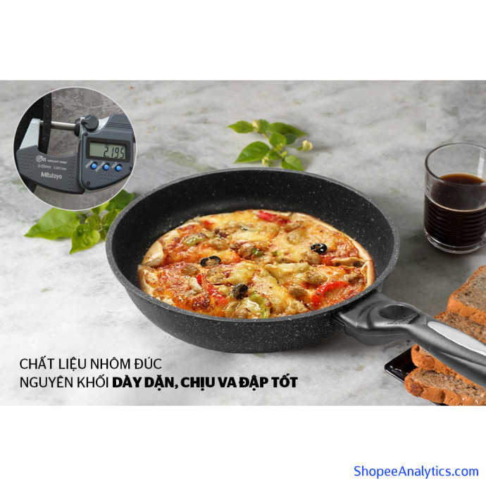 Độ dày thân chảo 3mm, đáy và miệng chảo 6mm