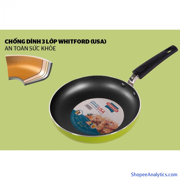Chảo trơn màu SUNHOUSE với công nghệ chống dính Whitford - USA tuyệt đối không có tình trạng thôi nhiễm vào thức ăn, an toàn cho sức khỏe. Lòng chảo được phủ tới 3 lớp chống dính, đem tới độ bền cao, dễ dàng vệ sinh và tẩy rửa.
