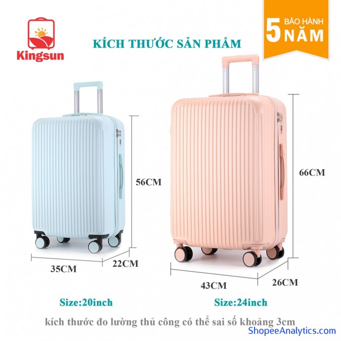 Tổng thể Vali kéo du lịch Kingsun size20/24inch bảo hành 5 năm được đánh giá trung bình 4.88/5 điểm dựa vào 5,834 đánh giá qua 12,646 lượt mua hàng (Cập nhập ngày 18/10/2021).