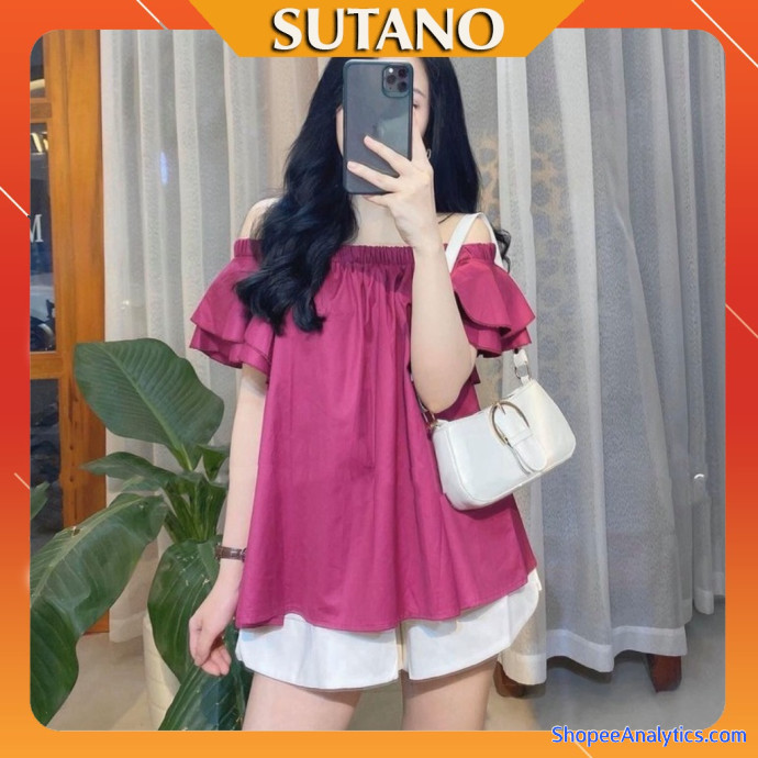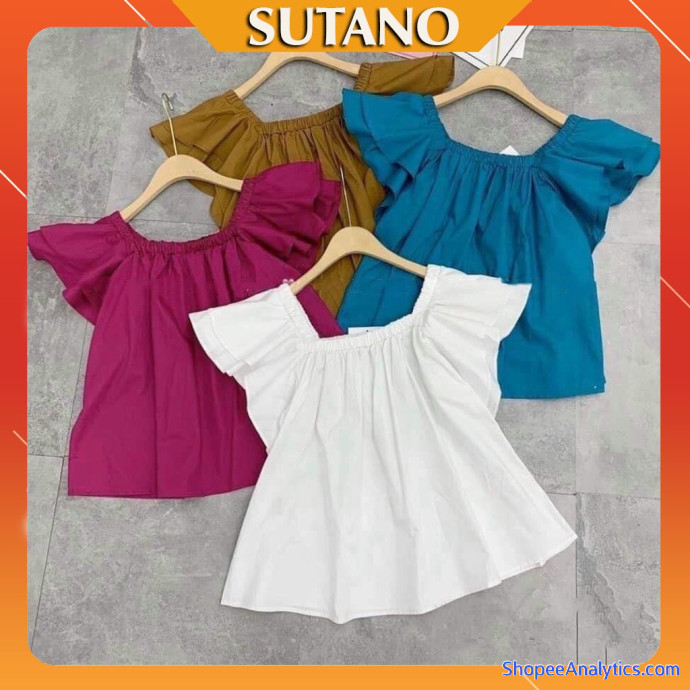 Áo kiểu nữ tay bèo vai trễ cổ vuông, Áo babydoll Bánh bèo Trễ vai SUTANO-A398