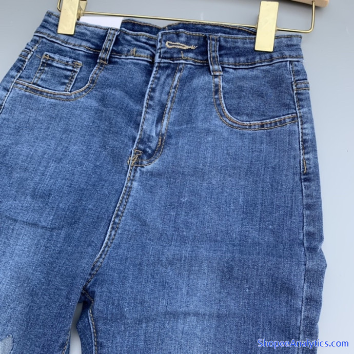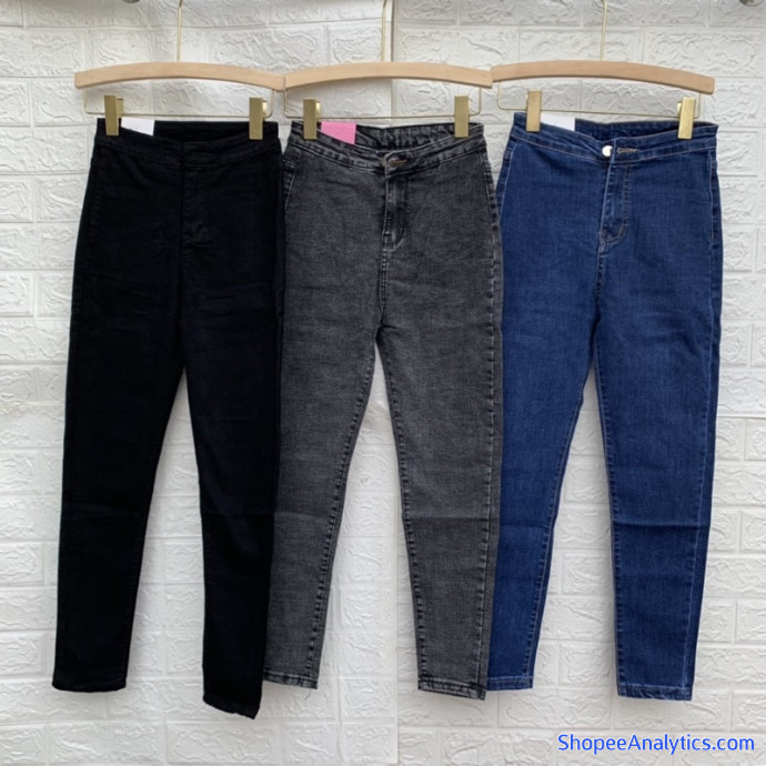 Quần bò jeans cạp cao dáng ôm nắp túi