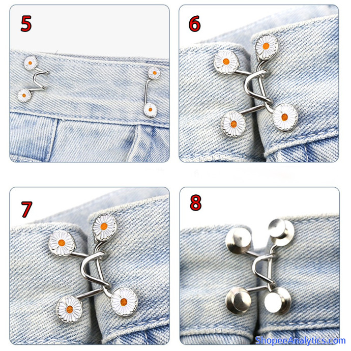 1 set gồm 1 móc quần kèm 4 nút cài loại tùy chọn trong phân loại dùng cho 1 bên quần.