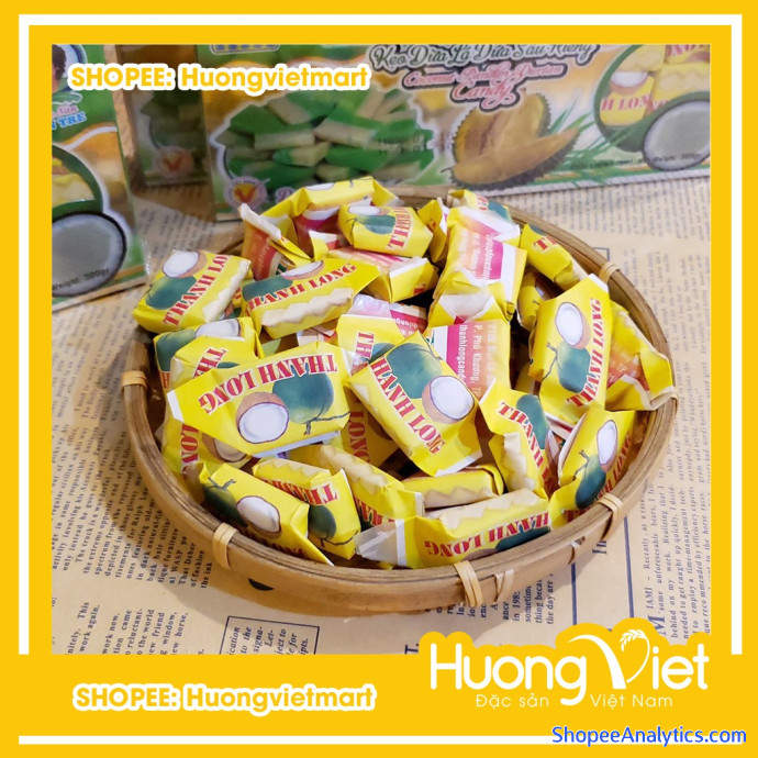 🔰 HUONGVIETMART cam kết Kẹo dừa Bến Tre lá dứa sầu riêng chính hãng 100% THANH LONG, Đó cũng là lý do HUONGVIETMART nhận được hơn 3.300 đánh giá 5 sao ⭐️⭐️⭐️⭐️⭐️