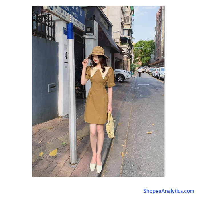Váy Nâu Cổ Phối Dáng Suông