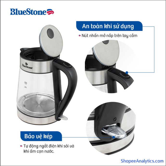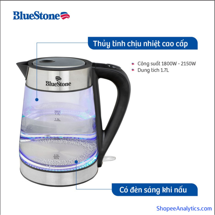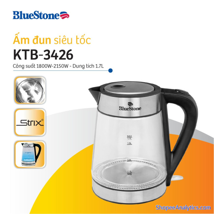 Tổng thể Ấm Đun Nước Bluestone KTB-3426 được đánh giá trung bình 4.91/5 điểm dựa vào 481 đánh giá qua 1,200 lượt mua hàng (Cập nhập ngày 18/10/2021).