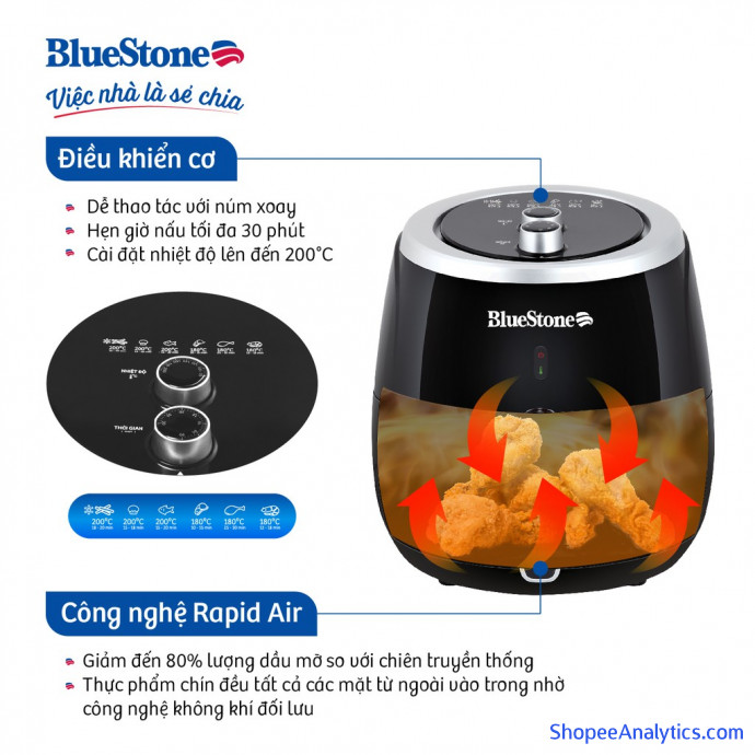 Tổng thể Nồi chiên không dầu cơ 5L BlueStone AFB-5870 được đánh giá trung bình 4.86/5 điểm dựa vào 1,025 đánh giá qua 2,412 lượt mua hàng (Cập nhập ngày 17/10/2021).
