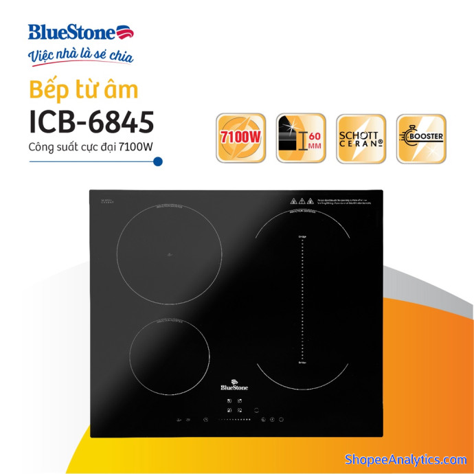 Tổng thể [Miễn phí lắp đặt HCM HN] Bếp Âm Từ Đa Vùng Nấu BlueStone ICB-6845 (7100W) được đánh giá trung bình 4.76/5 điểm dựa vào 33 đánh giá qua 110 lượt mua hàng (Cập nhập ngày 18/10/2021).