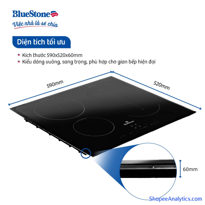 Kích cỡ bề mặt bếp: 59 x 52 x 6 cm